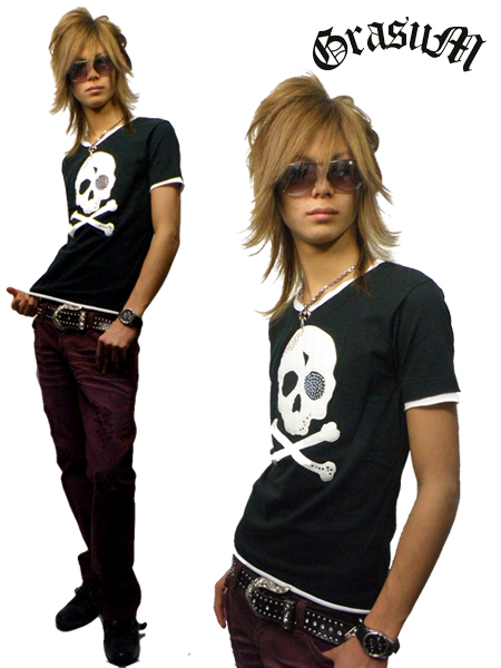 PUレザー貼り付けSKULL Tee