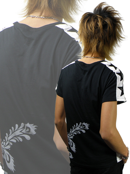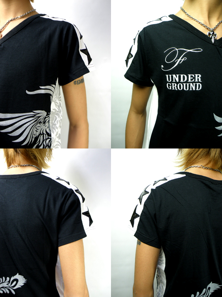 FERIATH(フェリアス)からフェニックスSTAR切替えTシャツ入荷致しました!!!Frontには刺繍でサイドは切替えをし、その上にフェニックスをエアーブラシですることによってFERIATH独特の雰囲気を演出!!!更には肩から袖口にかけて両サイドに★のPUレザーを叩きつけた切替えが入っておりデザイナーの拘りが感じられる一品!!!オススメ!!!商品画像にてモデルが着用しているボトムはVice Fairy アメリカンギャングパンツになります!!! |