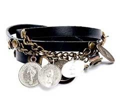 大人気ジャラ系アクセ!レザーにメタルのチャームがより一層オシャレを演出してくれます。個性派の方にオススメです。