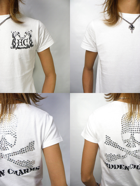 Hidden Chams(ヒドゥンチャームズ)からバックスカルTee入荷致しました!!!フロント左胸にはHidden Chamsの大人気ロゴプリントを施し、バックにはラインストーンで仕上げたインパクト大のスカルをON!!!スタッフ激押し商品!!!オススメ!!!