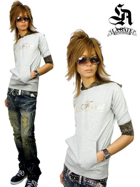 大人気ブランドLA GATEから新作の5分袖プルオーバーパーカーが入荷致しました! 薄手のスウエット生地を使用した、ライトなパーカーです! フード、袖口の切り替えにレオパード柄を配置し、カジュアルなシルエットながら、ワイルドなお兄系にもオススメの一枚となりました。 フロントには箔プリントを施し、その上に大小のラインストーンをプラスし、ゴージャス感もアップしています!! 周りに差を付けられるアイテム。是非この機会をお見逃しなく!オススメです!
