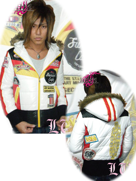 LUSTの新作ダウンジャケット2008年モデルの登場! BLKベース2色とWHTベース2色の4色展開になります! ワッペン、刺繍、ファー等非常に豪華な作りとなっております!完売必須!売り切れ御免!!
