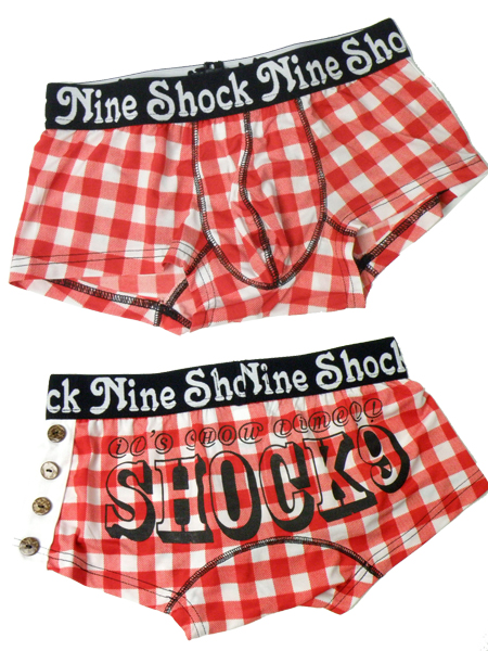 SHOCK9(ショックナイン)からmen's egg掲載サイドボタンボクサー入荷致しました!!!星条旗に続くアメカジ人気の柄がチェック生地!!!説明不要な程、定番となったチェックがパンツになっちゃったもんだから俄然人気の商品です!!!一見シャツを切り取ってアレンジした具合が古着系アメカジとして更にお洒落さをかもしだしてくれてます!!!