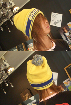 | ニットキャップ 頭のてっぺんにボンボンが付いていて可愛らしい☆ また下のほうにロゴが入ってる! シンプルなデザインだけど、色々なコーデに合わせられるスグレ物! |