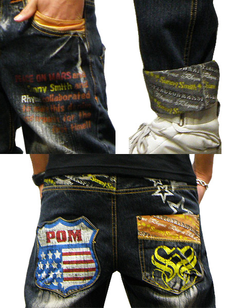 Sunny Smith(サニースミス)×PEACE ON MARS(ピースオンマーズ)×Rhyme(ライム)の豪華3ブランドのトリプルコラボデニムが登場!それぞれのブランドロゴをプリントした贅沢な1本です!!