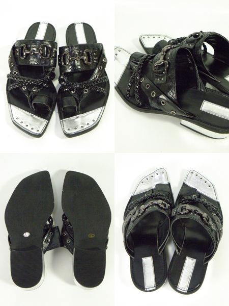 109-2大人気ブランドT2IN(ツイン)からスタッズレザーサンダル入荷致しました!!!独特な光沢感の素材に編みこみヒモ・スタッズベルト・飾りチェーンを付けたディテールへのコダわりを感じさせてくれるハイセンスなタタずまいが存在感高め◎つま先のメタリック感&カカトのヒールなどデザイン性の高さはオニモテマスト♪オススメ!!!