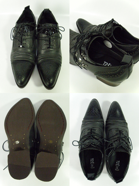 109-2大人気ブランドT2IN(ツイン)からドレープシューズ入荷致しました!!!上品でゴージャス。こんなシューズが欲しかった…と思われて方!!!必見です!!!外側に形が様々なスタッズやラインストーンがついた紐シューズ!!!指の付け根あたりはドレープのつくりで、つま先部分の穴は幾何学的なデザインでノーブルさを醸しだしている!!!履き口あたりはエナメルを使っていてクールに仕上がっています!!!オススメ!!!