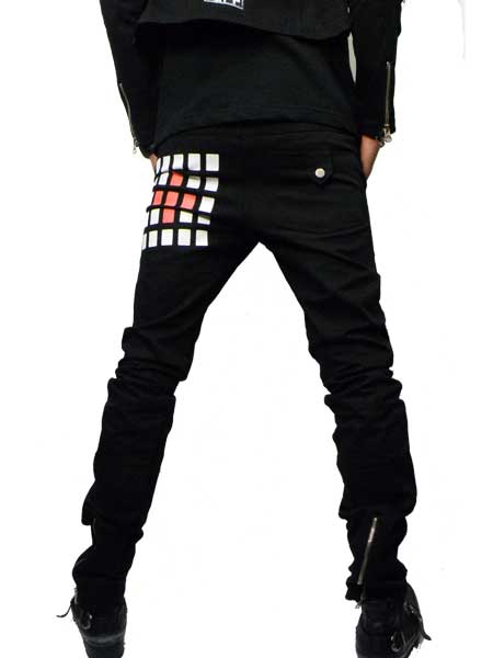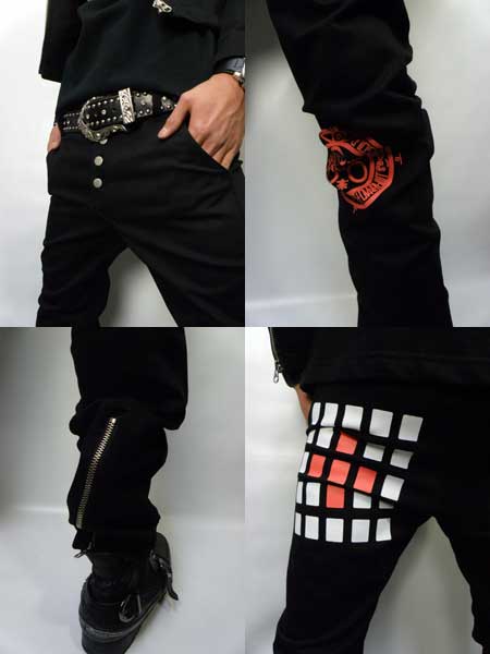 ZEALL 7/5(ジールセブンスラッシュファイブ)から太陽の聖還パンツ入荷致しました!!!シルエットが綺麗なこちらのパンツは膝部、バックポケットにロック感溢れるプリントが貼り付けられており、裾部分にはZIPが取り付けられ、ブーツカットのシルエットにも切り替え可能になっています!!!men's egg2月号 寺本 成位 君着用商品です!!!オススメ!!!