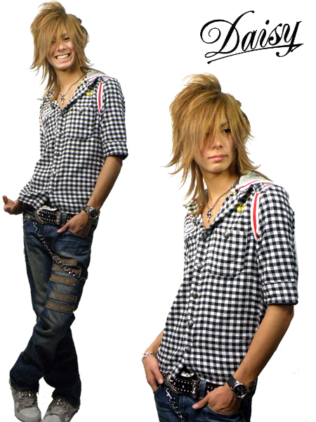 フード付チェックシャツ