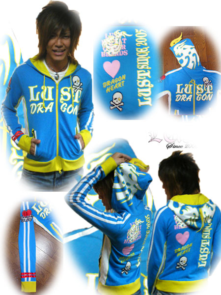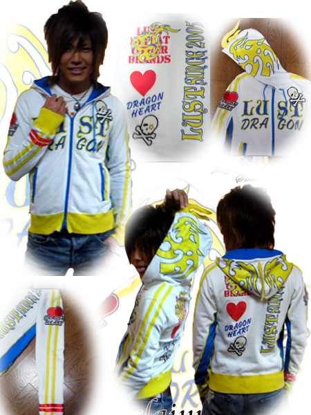 LUSTのモチーフ「ドラゴン」をイメージしたジップアップパーカーです! このパーカー一番の特徴はフード部にドラゴンをイメージした「トサカ」を付けました。 袖部ラインや脇の切換えなど仕様盛りだくさんのパーカーです。 デザイナーの遊び心満載の2008年LUSTを代表するパーカー発売です!!