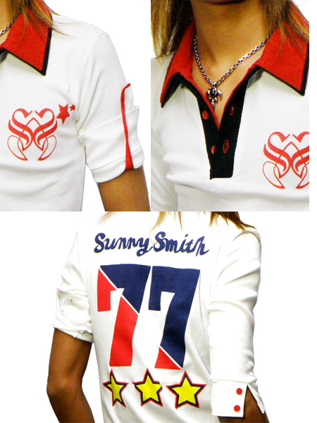 七部袖でこれからの季節にぴったりなポロシャツ☆フロントの左胸にはロゴエンブレムがワンポイントであり、バックにはロゴとスターとNO.77がポップなカラーでデザインされています!!