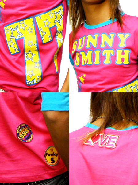 全体的にビビットなカラーを使いかなりカラフルに仕上がっています!!!フロントにバッチリ入ったブランドロゴや、カワイイスター柄の77のプリントに、バッグや腕に散りばめられたワッペン♪