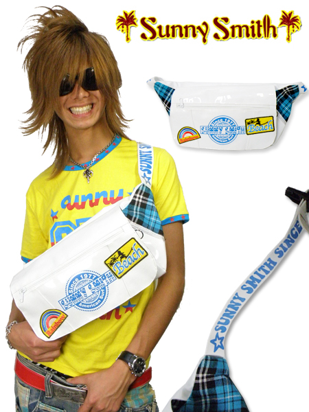 Sunny Smith(サニースミス)から今季☆初のエナメルロゴポーチ入荷致しました!!!フロント部分にはBigプリント&Sunny人気ワッペンを貼り付け、内側など至る部分にチェック生地をふんだんに使用したオシャレな一品!!!さらに機能性も抜群なコチラのバック♪men's egg掲載ITEMとなっております!!!オススメ!!!